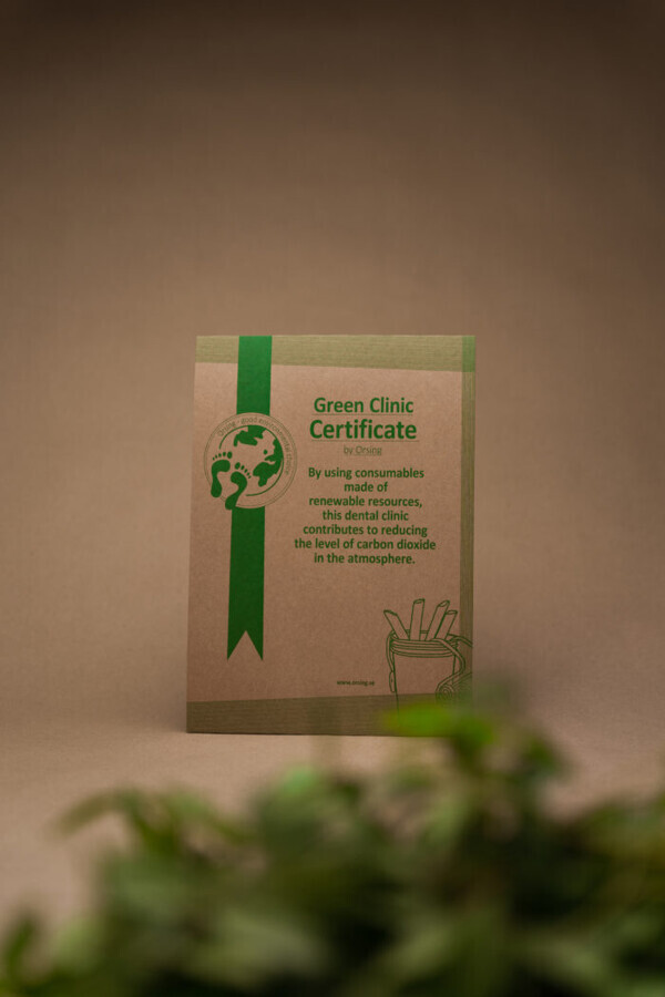 Als het gaat om het nemen van milieuvriendelijkere beslissingen, waar ziet Orsing zichzelf dan staan in vergelijking met andere bedrijven in de branche? (Wat ik hiermee bedoel is: Denkt u dat Orsing meer voorop loopt in de ontwikkeling dan anderen enz.) Als het gaat om het vervangen van fossiele brandstoffen voor hernieuwbare bronnen, geloven wij dat Orsing vooraan staat. De fossielvrije lijn breidt zich snel uit en omvat meerdere aspirator buisjes en bekertjes voor tandheelkundige praktijken. Steeds meer producten worden verpakt in thuis composteerbaar en biologisch afbreekbaar bioplastic, en alle producten van Orsing worden verzonden in FSC-gecertificeerde kartonnen dozen. Transport over zee en land heeft de voorkeur. We helpen daarnaast tandheelkundige klinieken met de communicatie over de keuze voor milieuvriendelijke producten richting hun patiënten: alle klinieken die voor milieuvriendelijke producten van Orsing kiezen, worden automatisch gecertificeerd met “Orsing - een goede keuze voor het milieu”. Ze ontvangen een certificaat dat ze in de kliniek kunnen ophangen en alle gecertificeerde klinieken kunnen aanvragen om op de website van Orsing te worden vermeld.