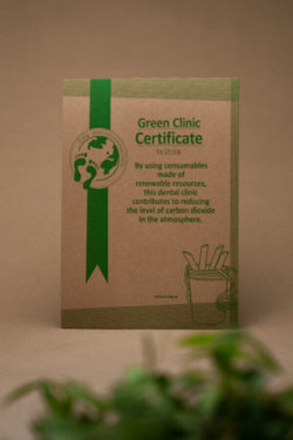 Alle klinieken die de milieuvriendelijke producten van Orsing aanschaffen, krijgen een certificaat om in de tandartspraktijk te tonen. (Afbeelding: Orsing)