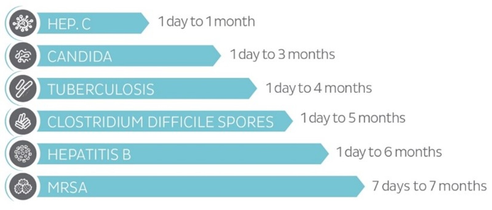 Organismen en pathogenen gedijen op oppervlakken van medische hulpmiddelen en overleven vaak langer dan u misschien zou denken! Reinigen en vervolgens desinfecteren met CaviCide is de sleutel tot het voorkomen van contaminatie. Maar omdat u uiteraard uw investeringen niet wilt beschadigen door het veelvuldig reinigen en desinfecteren, is CaviCide, met het lage alcoholpercentage, de bij uitstek geschikte keuze.