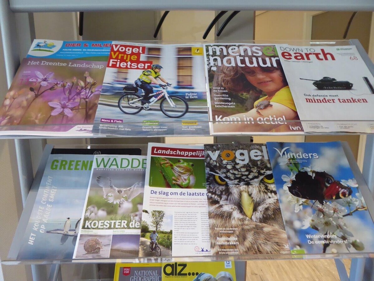 Verder liggen er in de wachtkamer alleen tijdschriften over natuur en milieu. “Zelf ben ik een natuurliefhebber en ook al veertig jaar actief als gids in de natuur,” vertelt Wiersema. Met de National Geographics en krantjes van Greenpeace en Milieudefensie probeert hij patiënten positief te beïnvloeden. “De Libelle hebben ze thuis ook. En de tijdschriften die we hier neerleggen, geven we weer door aan de buurman zodat ze meerdere keren gebruikt worden.”