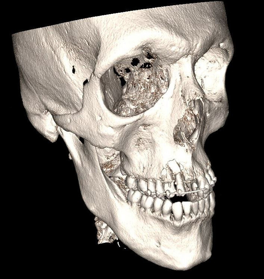 3D- foto van de schedel van meneer Bruinsma vlak na het ongeval