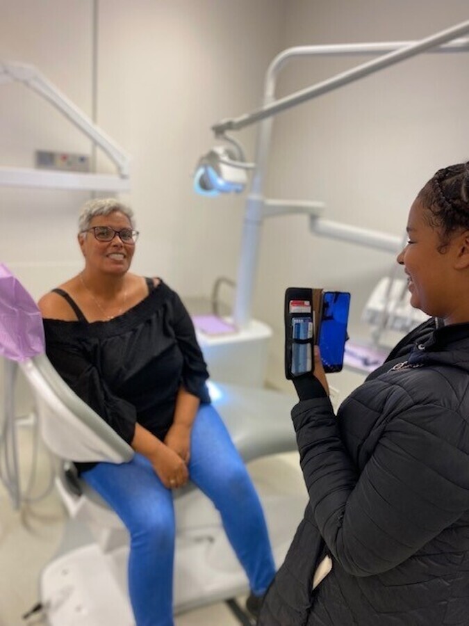 De patiënten die ik help vinden het fantastisch om weer witte tanden te hebben! Laatst was er een patiënt die me trots een foto stuurde met zijn Feyenoord-shirt aan en een dikke lach op zijn gezicht. Hij had eindelijk weer tanden. Soms komen ze terug met een bloemetje of een taart van de Hema voor mij. Ze hebben niks, maar komen mij bedanken, ongelofelijk.