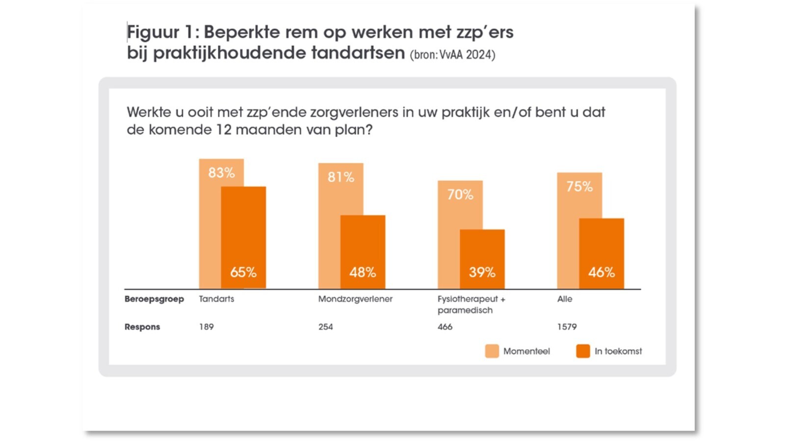 Praktijkhoudende tandartsen, maar ook andere mondzorgprofessionals zoals mondhygiënisten en tandprothetici werken bovengemiddeld veel met zzp’ers. Dit blijkt ook weer uit de resultaten van de meest recente editie van het VvAA-onderzoek onder praktijkhouders die werken met zzp’ers (november 2024). Wat blijkt nog meer uit deze peiling?
